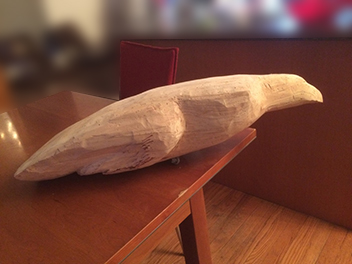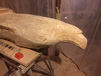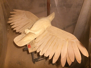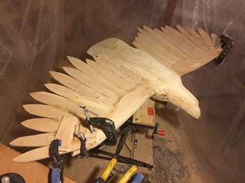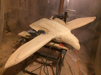 Shortening of the wings and carefully removing material to place the individual top layer of feathers. Also refining a gentle arch in the wings